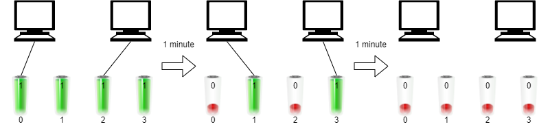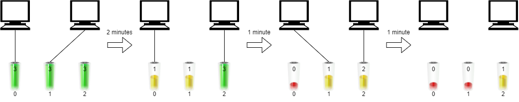 我们可以将时间作为横坐标,电脑作为纵坐标,直观地用图来描述电池的分配情况。这位博主画了一个图,很直观,我直接借用了