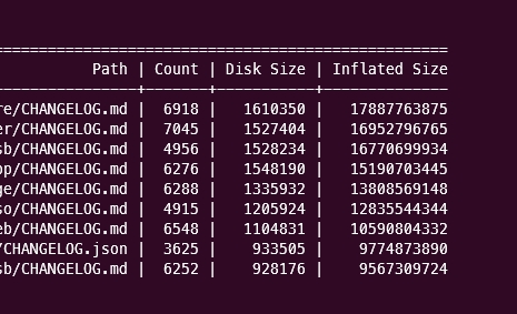 你还可以尝试新的 git survey 命令来查看各种新的启发式方法,例如按磁盘大小排列的热门文件、按膨胀大小排列的热门目录或按膨胀大小排列的热门文件。这些启发式方法将帮助您了解路径行走工作是否也会影响你的仓库大小。